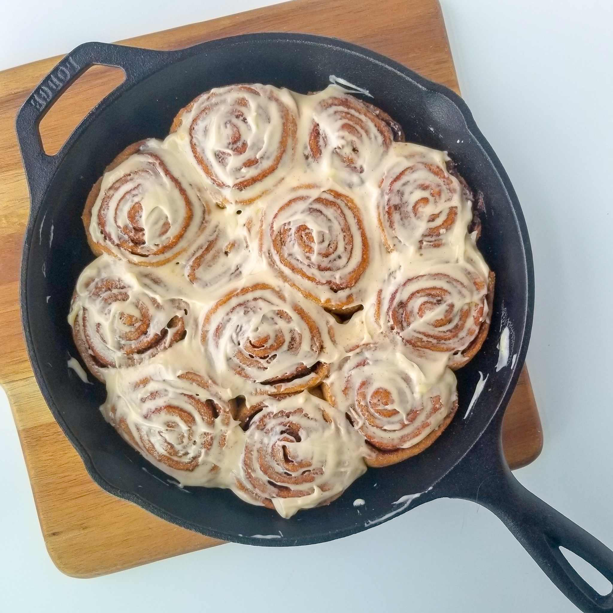 Sprouted skillet cinnamon buns – say that 5 times fast! I love a good treat, but I especially love making it myself so that I can feel good about the ingredients going into my food. I exclusively bake with sprouted grain flour because its lower in carbohydrates (ie. less impact on blood sugar), its high in fiber, protein, and antioxidants as well as being better digested by your body.
